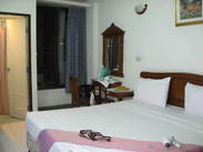 我们全程住的最舒服的就是曼谷的这家了,叫NEW SIAM II,距考山路大概七八分钟的步行时间,在另一条酒吧街的背面,既安静,又方便泡吧,他家一共有五层楼,一楼餐厅旁边有个游泳池,是我们住的唯一一家有电梯的GH哦,大床房才790B一间每天,房间里有电视,冰箱,空调,风扇,还每天送两瓶饮用水,