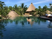 这家酒店的名字的确很“山卡啦”——SANKARA,位置有些偏僻,但是酒店有车可以接送我们外出。看到小无边泳池的时候,开心坏啦。嗯,提醒一下各位,不知道为什么泳池边上有些小虫。不过下去拍拍照什么的还是挺好看的。 我们住在二楼,一整层。很安静。一栋楼就两层,我们在二楼刚好有个大屋顶,好喜欢。进门前看到木楼梯上有些蚂蚁在旅游,不过它们很和谐,没有进门。所以房间里还是很干净整洁的,阳台外看到的是一些田,不过不影响加分。只能说去到哪都能见到鸡蛋花,太喜欢了。不到八百人民币的房间迷倒了我,浴室更不用说了,有个小天窗。 这个酒店可以预约免费的spa,好像是半小时。酒店安排的早餐,不习惯,不好吃。
