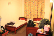 一楼的大厅,旅馆提供餐饮,一份炒粉的价格大概在人民币20左右。 我们要了两份,他全炒在一起,但是按两份的价格收钱,有点小贵。不过味道不错,你也可以在巴士站附近的餐厅吃饭,也有炒饭。 我们的房间在二楼,二楼有一个客厅。 费是RS4400。住了两个晚上。餐费是一共点了4份炒饭,总价是Rs1080. 最后要有10%的服务费。这里住的还不错。