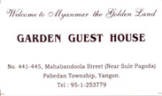 入住仰光garden guest house,20美元/天/标间(2单人床),含早餐。Garden Guest House就在Sule Pagoda(小金塔)旁边。地理位置很好。