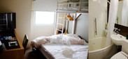JR东京站出来后过马路即到。房间非常小,小朋友只能睡在上层床上。入住后,发现上层的双层床没有铺,但是床单都有提供,须自己铺。房间是没有门卡或钥匙的,入住时,前台会告诉你房间的密码,开门时直接输入就行。酒店提供浴汤,男士直接去即可,女士同样需要密码才可进入。