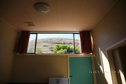 酒店建在高高的山坡上,房间的大落地窗像画框,框住了Apollo湾的茫茫碧海。房间是联排小别墅的形式,另一面有高窗 。
