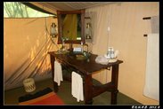 位于马赛马拉公园内的不设防帐篷酒店。德国的经理和所有当地员工都热情无比,给旅客绝对的五星级服务!比如晚上会贴心地在被子里给你准备热水袋。午餐可以自行选择完整的法式西餐套餐。晚上提供的烛光自助晚餐。每周五晚上是非洲之夜,有各式烧烤和非洲舞蹈表演。茶有十几种选择,让你眼花缭乱。缺点是热水和生活用水都是限量的,两个人只有20升洗澡水和13升生活用水,要珍惜使用。帐篷里限时供电,但在酒吧可以24小时充电。电源是太阳能。酒店的价格相对来说较贵。 谈到不设防是指这个酒店就建在丛林中,没有电网或其他保护系统。而酒店附近不远处就是一只金钱豹的地盘。而晚上会有各种动物如河马在帐篷外走过。夜幕降临后如果要在帐篷外行走必须敲钟召唤马赛保镖带着你走。所以绝对是既有探险精神有喜欢享受的驴友的首选!