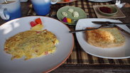 Sanur 萨努尔:Tari Bed & Breakfast塔里住宿加早餐旅馆,预定的豪华套房,Rp 285k,折合RMB130一晚,接机Rp200k。这样一个过渡酒店,离海滩很近而且包含早餐(早餐很好吃),性价比很高。他家在booking.com的排名和评价都很好。老板Eily是个很风趣的大叔,头发花白,扎个小编子,很健谈。因为他在纽约呆过,所以英语也不错。他的女儿Tari今年4岁,非常可爱。个人非常推荐。 机场到萨努尔差不多一个小时,我们抵达酒店的时候已经凌晨1点多,老板Eily一直等着我们,车刚到酒店门口,他就出来非常热情的跟我们问好,把我们带到房间,跟我们讲解下房间设施什么的,并一再提醒我们早晨去楼下吃早餐,说他们的早餐非常棒。 早餐果然很好吃,蛋饼很嫩,里面有很多蔬菜丁。面包片和草莓果酱上来的时候,Eily说这些都是他们在小厨房里自己做的。最后还有一份水果酸奶,Eily特意把粉色碗给我。水果大多都是来自Eily小院里的果树,他很自豪地一一指给我们看,只是可惜有些水果我不认识。我和旁边桌的小夫妻笑称Eily的小院就是他的supermarket。 Eily一边忙活一边跟我们闲聊,他之前在纽约呆过很久,后来911后就回巴厘岛了,他明年想在小院里开个美食培训班,顺便学学中国美食。他说中国厨师做饭很帅,然后比划了几下颠大勺的动作,哈哈,真是个热情洋溢的大叔啊。