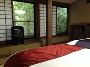 黑川不愧是远离城市的山中小镇,一下来我们就被震惊了。强烈推荐住宿的旅店房间,奢侈了一下住了唯一一家房内带有私汤的日式房。一客厅(可铺榻榻米),一卧室(在日式房中睡床,就是辣么任性),二卫生间,一私汤。房间之大简直颠覆了我对日式旅馆的认识,而且所有的房间包括卫生间打开门都是绿色,对于住都市的我们来说是多么大的惊喜,简直是梦想中的房间! 日式移门多得都找不到门,我的小伙伴们看到后都开心的直跳脚,引得带我们到房间的老板娘侧目,我只好给老板解释是太激动了 ! 虽然有私汤,有旅馆的露天温泉。我们还是买了黑川有名的入汤手型。可以任意享用三家的温泉,1300日元/块。反正价格不贵,见识一下其他特色旅馆也不错。请老板给我们推荐了3家,穿上浴衣出发! 一早泡个晨汤,然后去吃早餐。旅店老板会在前一天晚上和你约好早餐时间。然后旅馆派车送我们去了车站(补一下,我们到达当天老板就问了我们交通,帮我们约好了回程的巴士) 黑川的美是不到那里无法形容的!我以前去过的箱根、热海,之后去的由布院都完全无法和它相提并论。一下子起点太高又不适应了 。希望大家都有机会去体验。