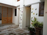 去槟城就是要有懒散的心和坚强的胃,因为那里好像所有人都是懒懒散散的,旅馆老板也是任性的,到那里门都是关着的,好在有另外一家子同时到店要入住,打电话给老板,才来了个小伙子开门。古色古乡的装修风格,家庭房房间都在2楼,需要脱鞋,木地板。 优点:地理位置绝佳,离光大步行5分钟,出门右转就是汕头街,各种特色小吃;房间很干净很大,至少30平方,可以睡4个人,1个双人大床,一个单人小床和一个床垫,除了洗漱用品什么都有,冰箱里连冰块都准备了。房间里各种地图,就是没有壁画地图。一楼有饮料机,豆奶,白咖啡,美禄,奶茶无限畅饮。 缺点:老板貌似很少出现,不知道1楼开店的那个是不是,伺候我们和打扫卫生的只有那个开门的小伙子,入住期间房间不打扫,他英语很烂,除了告诉我们门卡的用法,其余交流基本靠肢体语言,不过很努力热情地在为我们服务,虽然是淡季,生意依旧很好;