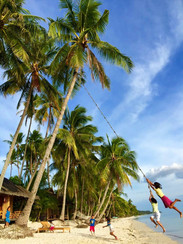 离锡基霍尔码头9公里,在San Juan(圣胡安),位于岛的西南部,坐三轮车大约20多分钟就到了,砍价到200P/车。Coral Cay Reosrt酒店总共只有15间房,客人并不多,不像一些度假村熙熙攘攘的,显得很宁静。房间是用竹子和茅草等材料搭建的,空间宽敞明亮,设施齐全,每天卫生打扫得很干净。木质地板、空调、保险箱、餐桌和冰箱一应具全我们订的7号房就建在沙滩上,推开门就是一望无际的大海。 晚上坐在沙滩上,我们被漫天星斗彻底地震撼到了。可惜我们的相机无法拍出效果。房间门口沙滩的椰子树上挂了一根粗绳,上面隔半米结了一个绳结,可以当作是秋千荡着玩儿。下午几个当地小孩在玩耍。他们好好的给我们秀了一把他们的拿手绝技。酒店的泳池游不大,干净程度还是可以的。桌球、健身房供客人免费玩和使用。二面书柜摆满书籍。