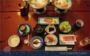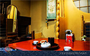 在距离火车站两三公里的横汤川北岸的下高井郡山ノ内町。三层木结构的传统建筑,非常日本的赶脚!老板是三四十岁的中年人,带日本味道的英语很流利,太太是一位很漂亮温柔的标准日本woman,夫妻两的生意做得不错。 松屋前厅,(看,汽车停在门前了吧?)客人进门后要在这里换上室内拖鞋。因为地板尽管已经油漆斑驳,但都是一尘不染擦得锃亮哒!送我们上来的时候,老板说现在这里的天气已经冷了,没开暖气,不知我们能不能习惯。乍一进屋是很冷,尤其是换上日本和式浴衣的时候,但是晚上泡了一圈汤之后,睡在榻榻米上,人陷进巨厚的被褥里,竟然一点儿都不觉得冷啦!参观下松屋酒店室内风吕的女汤,除了门楣上的中文之外,都很日本吧?那布帘尤其那块用白桦木做成的小牌子“御婦人用風吕”,蛮有味道滴说。 其实室内设施很简单,除了淋浴洗浴设备之外(要先洗干净再泡这是礼仪哦!),就是一个或大或小的热泉水池,一般都是木结构的,地面也是木条,木头大多已经被水侵蚀多年成了深棕色,洁净透明的热泉满满外溢着,还有汩汩流淌的水声,一切都散发着一种古老和静寂的韵味。 餐厅也是日式的,根据就餐人数,大餐厅可以用格栅隔成小餐厅,小餐厅又用屏风隔成若干小间,客人之间互不干扰。餐具很讲究,传统风格的小盘子小碗,每人面前是大小十几件,每样菜点都是一点点,但摆盘和搭配都十分精致,让人不忍下箸。最是那米饭出奇地好吃,米粒圆润透亮,入口有一种新米的清香,在小海线佐久盆地曾经看到收获中的稻田,当时就很期待吃到日本高寒地区的大米呢!