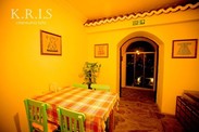 酒店在山上,开车上来的时候简直是45度斜坡开上来的。但是风景很好,阳台可以看到整个小镇。老板娘是一个香港人,会讲中文,装修的也蛮有特色的,餐厅还有一个火炉。 憋屈的是,我们到了汽车站后,一看google地图,很近,走路15分钟。果断走路。可是越走越远,走了快半个小时了,后来走到一个斜坡下,导航显示翻过这个斜坡就到了。那对于我们这种扛着三大皮箱的来说,那就是相当于翻一座山啊。后来memory翻过去找酒店的人来接我们。后来才知道,我们可以到了汽车站后,让汽车站的人打电话给酒店,酒店会来接的。还有一个优点,就是就是酒店来回小镇有车可以接送。