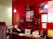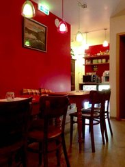 挑房间时可以不一定挑三人间,这种选项比较少,可以挑两人间加床或四人间。离哈利两百米,一推门像个客厅,左手边沙发桌子右手边简易吧台。放下行李就去对面餐厅吃晚饭,一进去哇豪华级西餐厅啊!红色桌布红色纸巾,昏暗的灯光轻音乐。