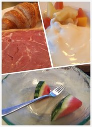 地理位置:斯卡夫塔费德冰川脚下几乎唯一的住宿,冰川的集合点就在酒店对面的加油站,这是最大优势。 设施与卫生:整体条件类似于美国随处可见的motel,价格贵三倍,当然这是在冰岛,大家都懂。 餐饮:对于早餐,我很想吐槽,迫切的想吐槽,下图中那两坨西瓜看见了么,我们到的时候就那样,走的时候还那样,东西空了服务员永远不知道添,必须去厨房门口喊,才会从挤做一堆聊天的人里面出来一个没精打采的,懒洋洋给你加到半满,我很想问她们以前是在中国哪个行政机构做的么……晚餐的服务稍好一点,当然价格也是辣手的,至于食物么,真的没什么可期待的,裹腹就好。