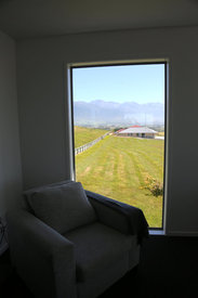 这是本次最为满意的一家house了,建在凯库拉市中心的高地上,离KaikouraLookout很近,是一座两面对海的两层小楼,楼下是两个卧室和一个卫生间,楼上有一个带卫生间的大卧室,阳台上有一个SPA浴缸,但是很可惜要连住两天才能使用,客厅厨房连餐厅在楼上的公共区域,是个将近80平米的大空间,两边都是大落地窗,望出去是连绵的山脉、翻滚的草浪、悠闲的牛羊和蔚蓝的大海,简直就是置身于一幅田园画卷中,吃饭的时候胖子感叹每扇窗的外面都是一幅油画啊,但是屋子里又提供了完完全全的现代化服务,屋子是新装修的,洗衣房干衣机洗碗机这种就不用说了,还有全套的水温中控设备。 如果非要说缺点的话,大概就是因为新装修的缘故,屋子里的油漆味道还没有完全散去,所以我们都开了一点窗睡觉。 屋主eve非常nice,虽然一开始她就要求我把房款和押金打进她的银行账户,但是在我邮件说明不方便的理由后,她允诺了我们可以到达新西兰后再付款,到了新西兰后我也一直没有去银行付款,取得联系后她也谅解了,我们到达以后她更是主动告诉我们第二天没有客人,我们可以一直呆到想离开的时候再离开,所以第二天我们得以享受了一顿龙虾大餐后才心满意足的离去,就冲这一点我也要给她五颗星。
