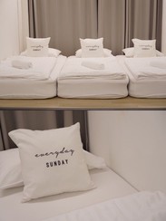 这家旅馆就在恰图恰附近,位置是在两站BTS的中间,这点有点不方便,但是打车的话也是不会贵的,因为离恰图恰就是直线距离。旅馆附近有两家711,临时买东西也很方便。 我订的是三人房,是有三张独立的床排一排的,整个旅馆的设计,就是满迎合现在的流行的趋势,黑白、简洁。人民币300多一晚的样子,我跟小伙伴分摊下来一人100多点,我们是相当满意这里的服务跟环境。因为之后要去清迈两日,大部分行李我们也寄存在这里,前台姐姐没有收取我们任何费用。