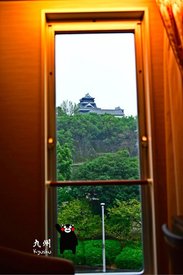 房间就正对着日本三大城堡之一的熊本城,当初正是看中它的地理位置才预定了这家。