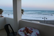 这家酒店跟海滩一条马路之隔。这就是当初选择这家店的原因。房间直面大海啊