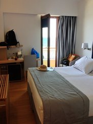 从第一张图片上可以看出,哈尼亚港口的酒店多集中在西岸,而Porto Veneziano则坐落在不能再东的东岸。当初选中这家,完全是冲着Booking上的评分,居然有9.5分之高! 从装潢上看,Porto Veneziano应该是一家比较新的酒店,无论是房间里还是走廊中,处处干净整洁。房间布置和装饰是我很欣赏的简洁现代风格,虽然房间依旧不大,不过卫生间及淋浴间是我在希腊住过的这几家酒店里最大的。我们住的这间面向港口,一踏上阳台即有无敌港口风光~而且这家酒店也为我们准备了蜜月礼物——一堆水果和一瓶香槟,讨厌酒精饮品的我也没忍住,跟老公两个人坐在阳台的小桌旁,一手香槟一手水果地看着港口边排列整齐的船只和夕阳笼罩的美好光线~还有一点非常可爱,mini bar里的饮料是免费的!我还特别喜欢酒店一楼餐厅里手动鲜榨橙汁机,机器是透明的,可以看到新鲜的橙子在里面是怎么滚来滚去被切开并榨出汁来,本来很想拍下来,可是周围的人都在好好吃早餐,我真不好意思拿出手机来拍它…… 不得不说,Porto Veneziano是我在希腊住过的最推荐的酒店,虽然价格也是我们这趟行程里比较高的——只比圣岛的酒店便宜,一晚85€含早餐,不过就整体质量而言我认为还是非常值得的。相对有当地特色的民宿,我发现我还是比较偏爱现代式的酒店~