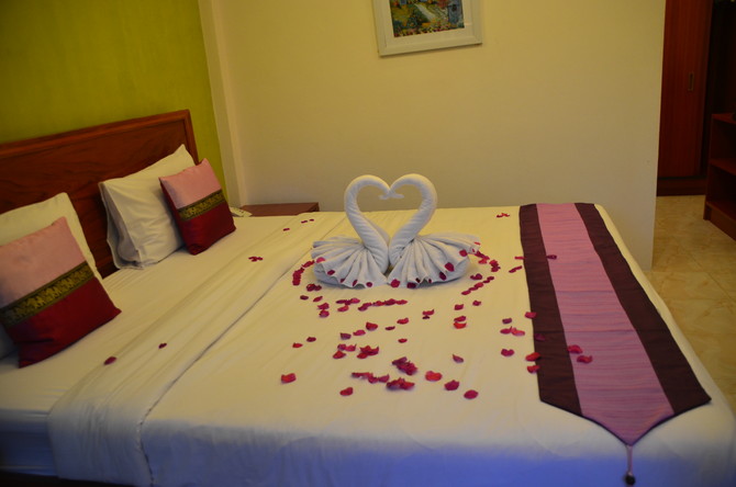卡伦海滩的一家花园酒店 ,也是第一天入住的酒店。网上订房的时候说了句是蜜月度假,到酒店给了一个小小的惊喜,160一晚。